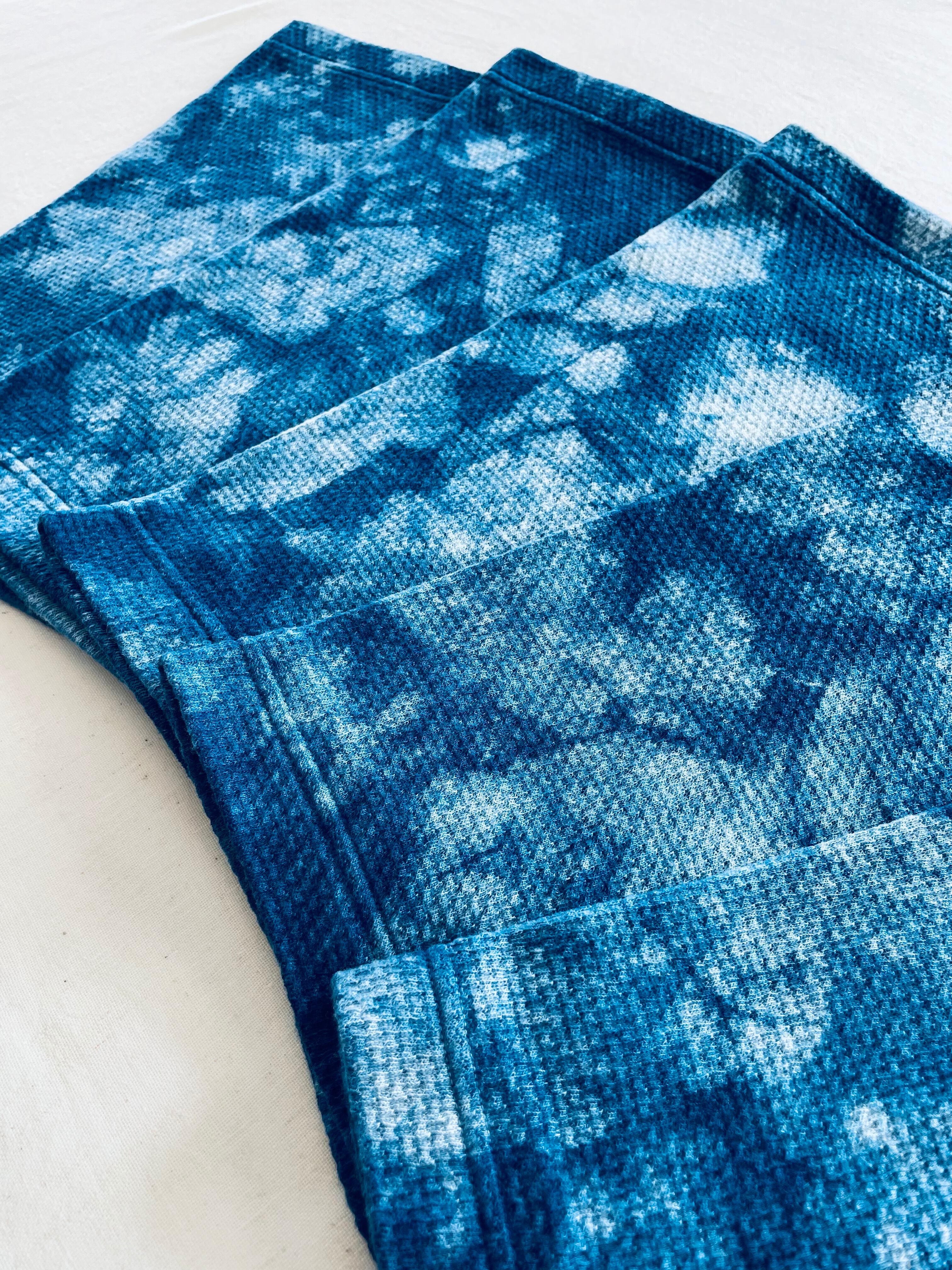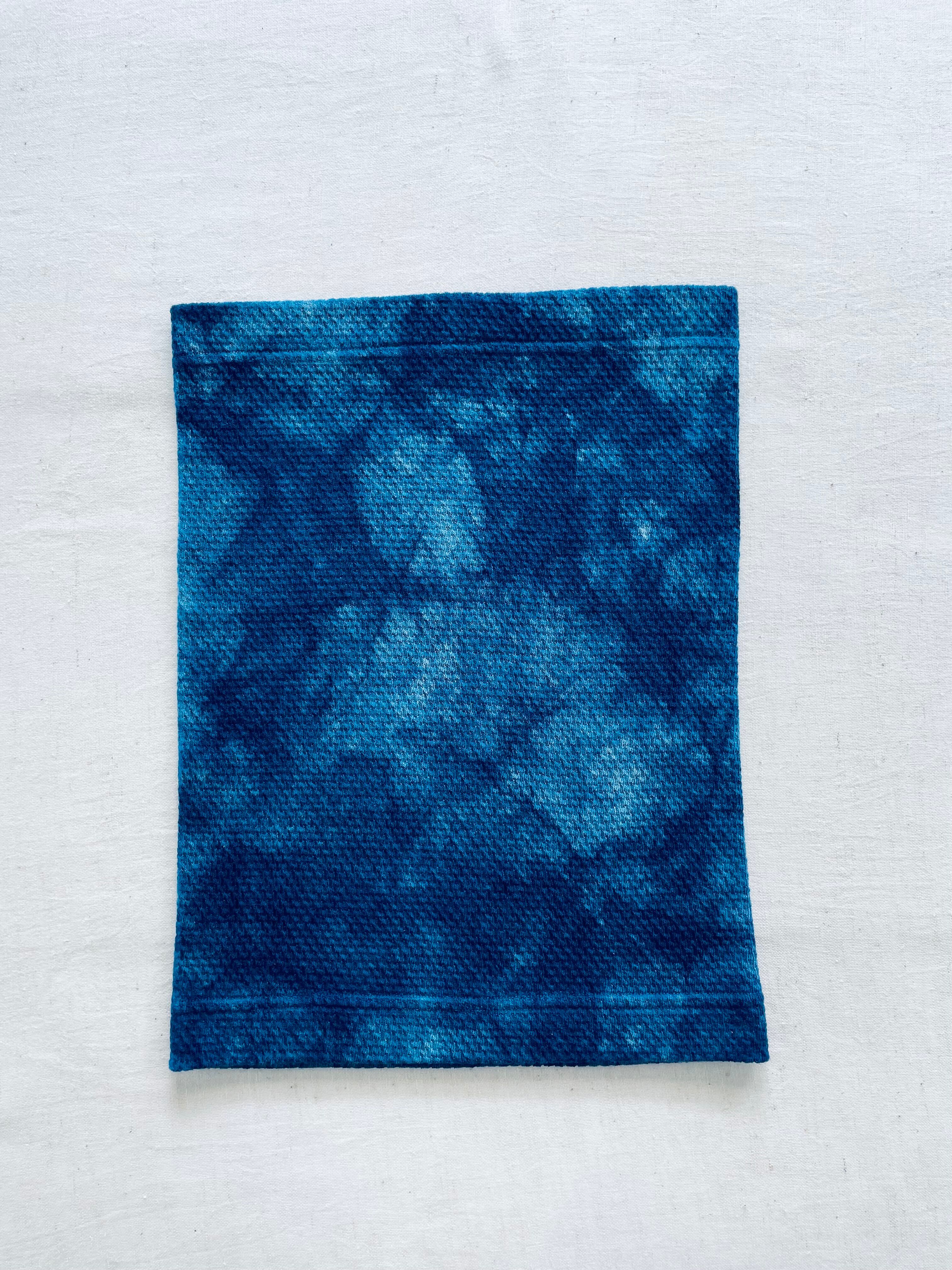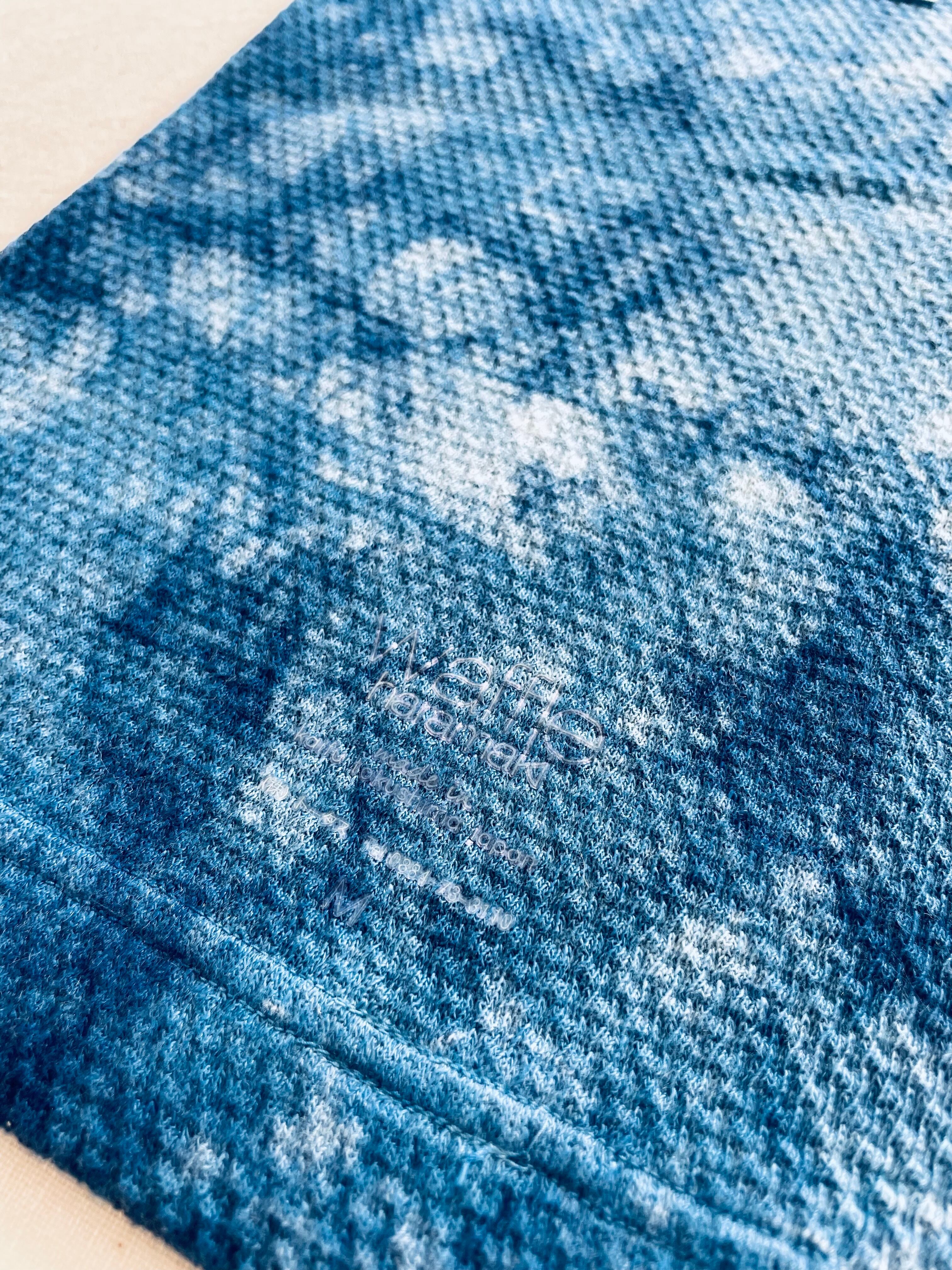 灰汁発酵建の天然藍染染料で藍返し柄に染めました。