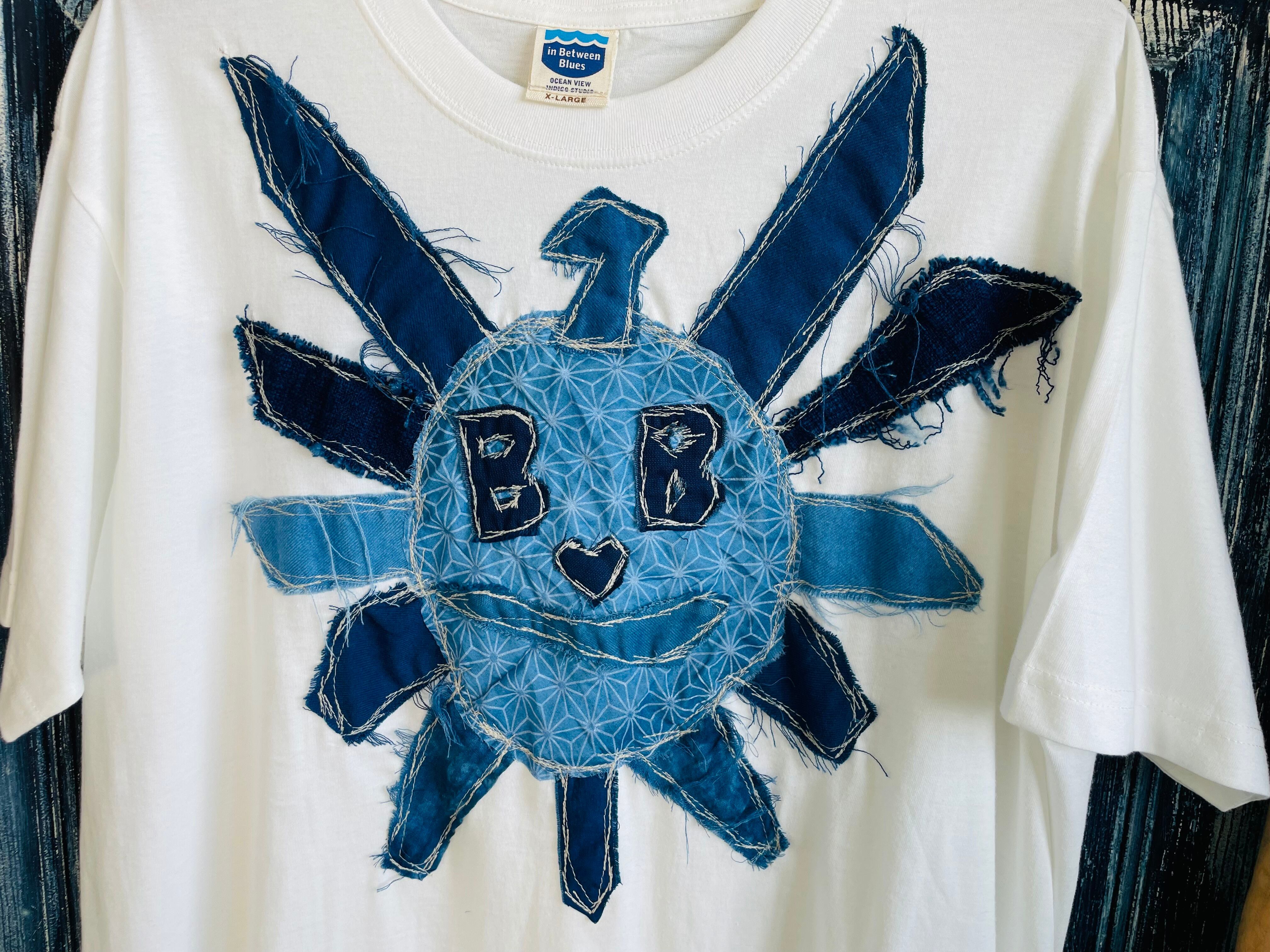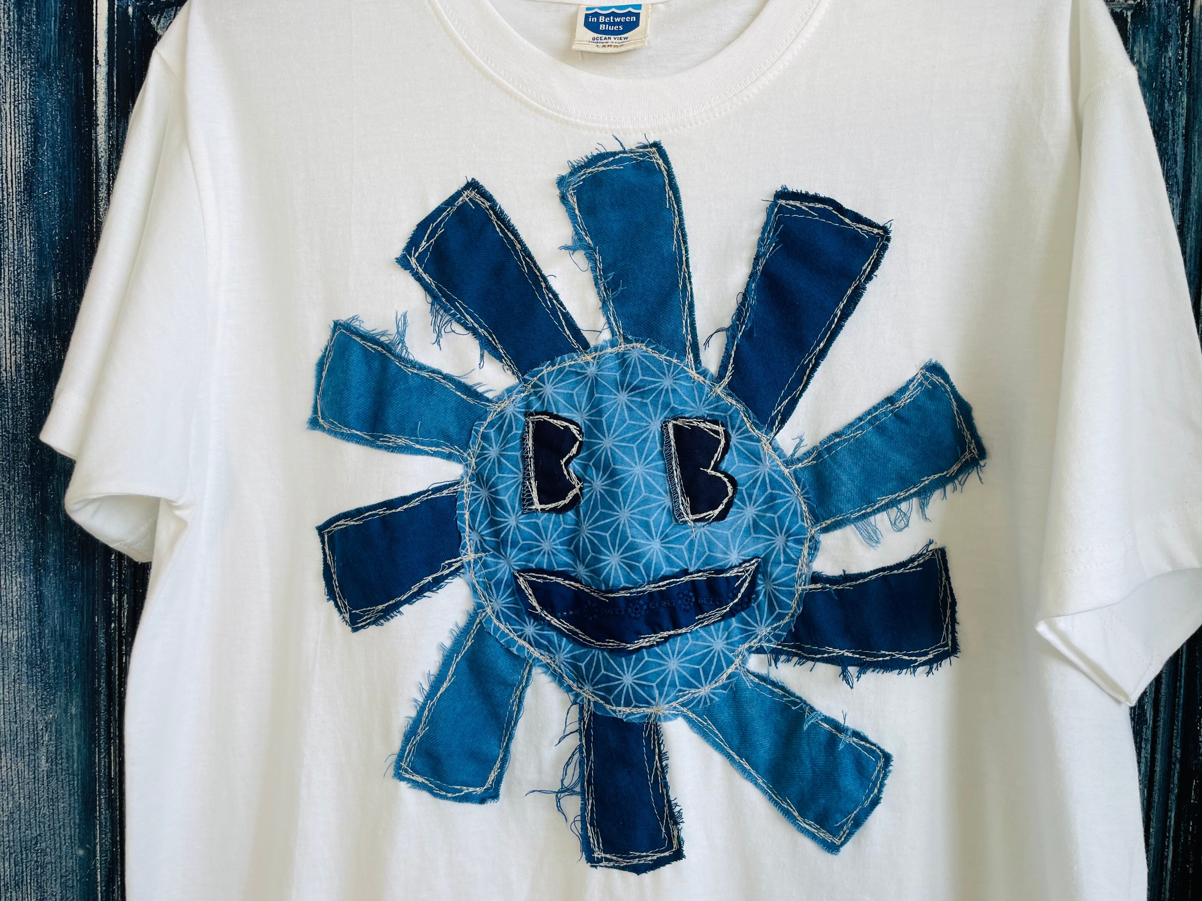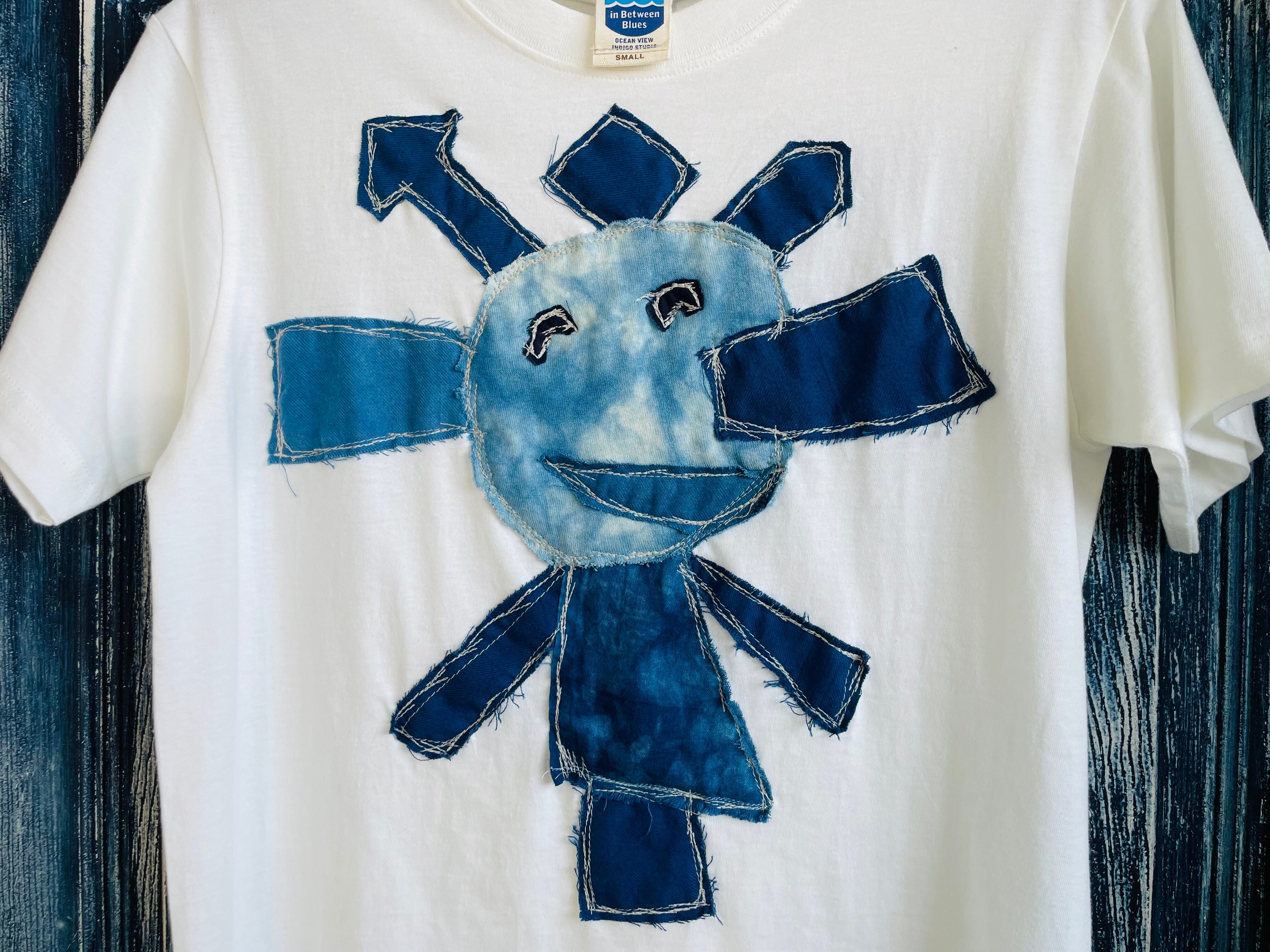 藍のハギレ布を使ってお任せアートTシャツを製作してもらいました。