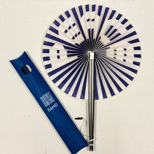 「個」は一つひとつの要素やパーツ、「群」はそれらが集まってできる集合体、「律」はそれらを組み立てるためのルールや法則を意味します。この3つの要素をうまく組み合わせることで、多様で美しい模様やデザインが生まれるという考え方です。さらにこの考え方には、「多様性を認め合い、つながりを生み出す」というメッセージが込められており、それを誰にでも伝わる言葉「PEACE(平和)」で表現しています。また、FANO独自の360度に広がる蛇腹(じゃばら)構造と、日本の伝統色である藍と白の交互配色によって、見る角度によってPEACEの文字が浮かび上がったり隠れたりするなど、さまざまな表情を見せてくれます。