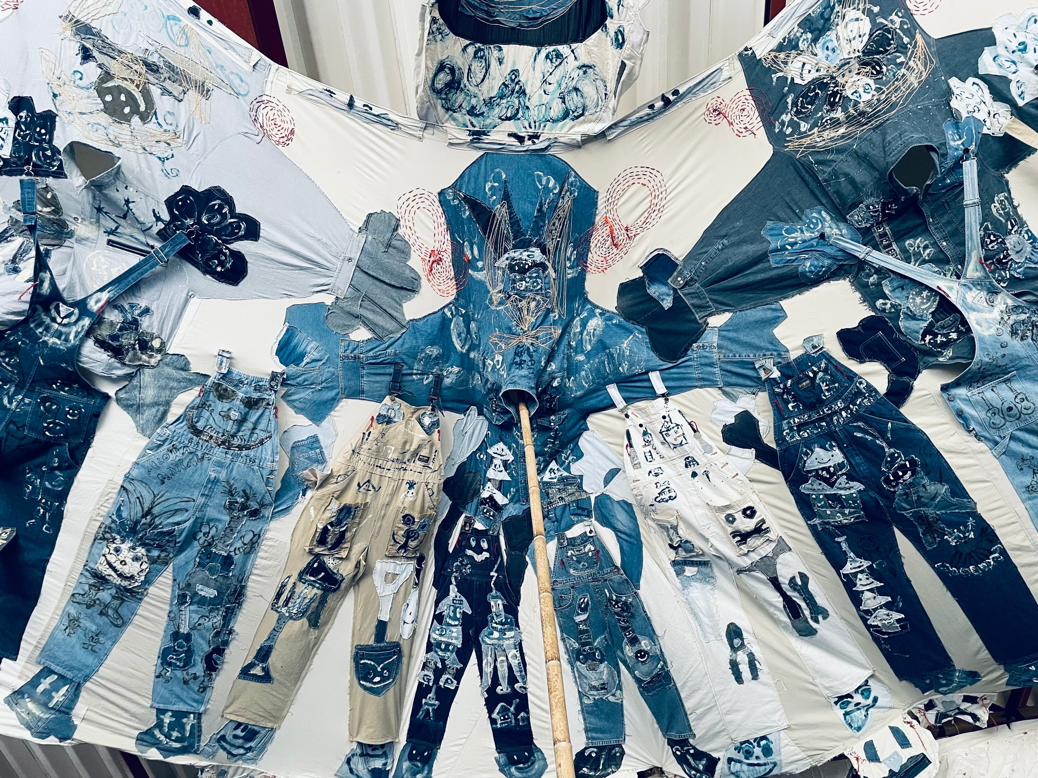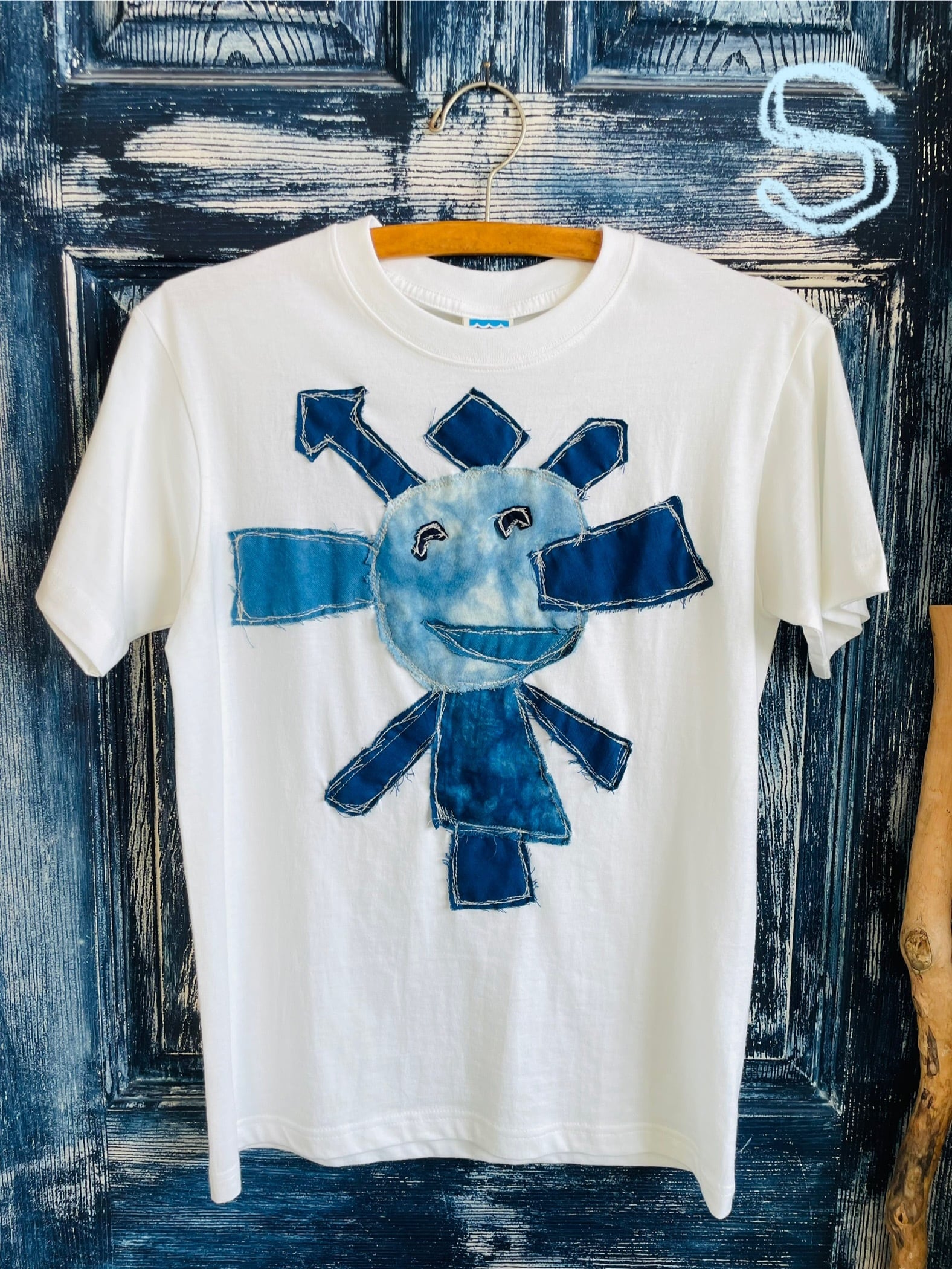 藍のハギレ布を使ってお任せアートTシャツを製作してもらいました。